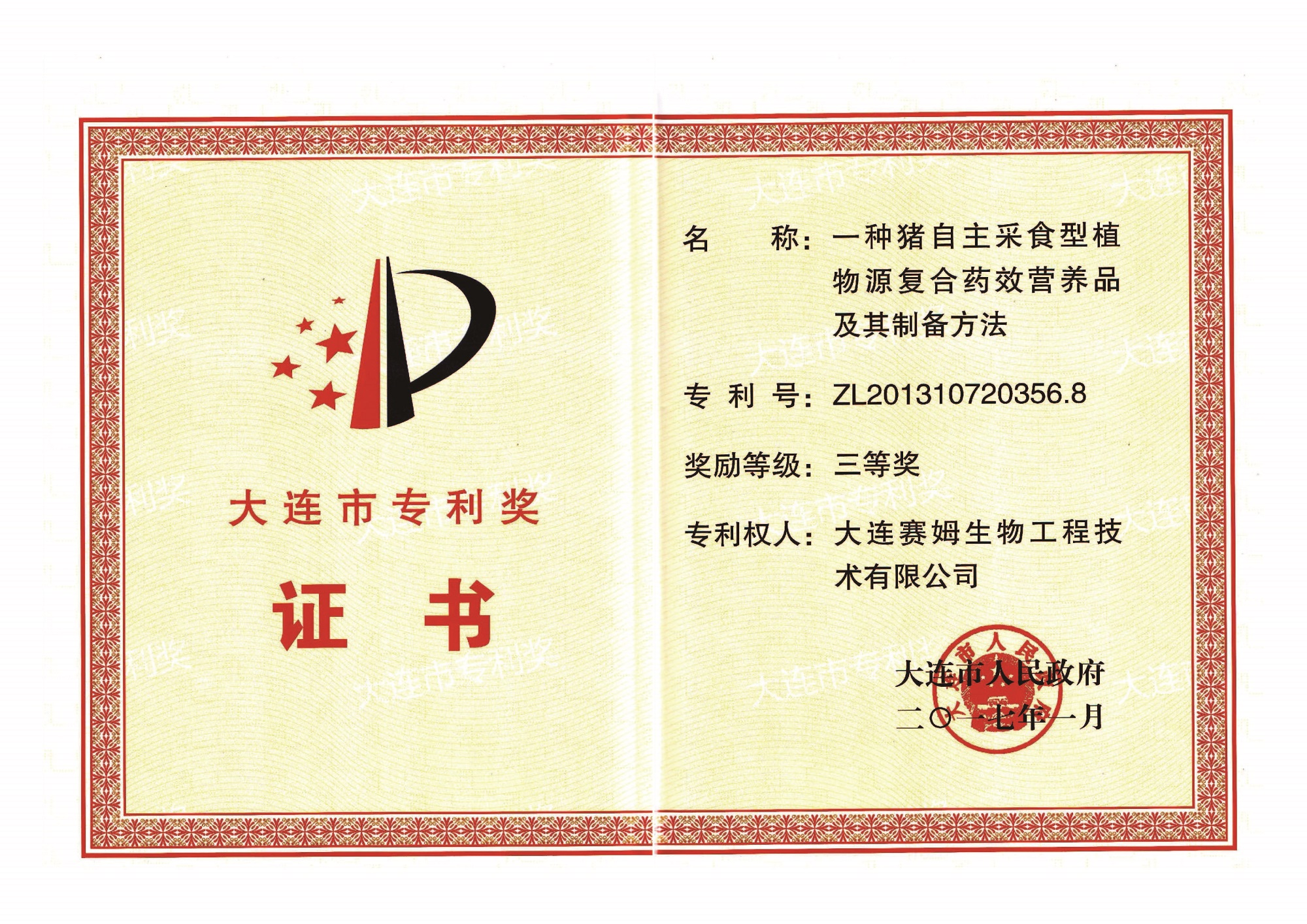 ? ? ? ? 公司先后承擔(dān)了國(guó)際重大合作項(xiàng)目、國(guó)家科技部863計(jì)劃項(xiàng)目、國(guó)家自然科學(xué)基金項(xiàng)目、國(guó)家杰出青年科學(xué)基金項(xiàng)目、遼寧省科技成果轉(zhuǎn)化項(xiàng)目、遼寧省海外學(xué)子創(chuàng)業(yè)工程專(zhuān)項(xiàng)計(jì)劃、遼寧省海外研發(fā)團(tuán)隊(duì)項(xiàng)目、遼寧省中小企業(yè)創(chuàng)新基金項(xiàng)目、大連市產(chǎn)業(yè)技術(shù)創(chuàng)新資金項(xiàng)目、金州新區(qū)現(xiàn)代農(nóng)業(yè)計(jì)劃項(xiàng)目等40余項(xiàng)國(guó)家、省、市、區(qū)級(jí)科研課題。截至目前,公司擁有3項(xiàng)國(guó)際領(lǐng)先水平和3項(xiàng)國(guó)際先進(jìn)水平的技術(shù)成果,申請(qǐng)國(guó)家發(fā)明專(zhuān)利71項(xiàng),已獲授權(quán)30余項(xiàng)。公司先后獲得“國(guó)家重點(diǎn)新產(chǎn)品”、“遼寧省科技進(jìn)步獎(jiǎng)”和“大連市科技進(jìn)步獎(jiǎng)”等科技成果達(dá)11項(xiàng)。